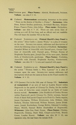 Credit: Catalogue of the charters, deeds and manuscripts in the Public Reference Library at Sheffield / prepared by T. Walter Hall. Source: Wellcome Collection.