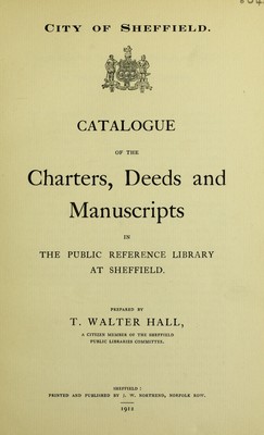 Catalogue of the charters, deeds and manuscripts in the Public Reference Library at Sheffield / prepared by T. Walter Hall.