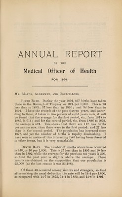 [Report 1894] / Medical Officer of Health, Torquay Borough.