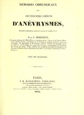 Credit: Mémoires chirurgicaux sur différentes espèces d'anévrysmes / par G. Breschet. Source: Wellcome Collection.