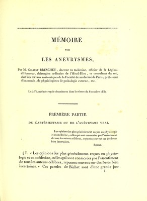 Mémoires chirurgicaux sur différentes espèces d'anévrysmes / par G. Breschet.