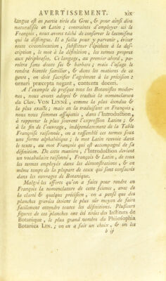 Démonstrations élémentaires de botanique, contenant les principes généraux de cette science / l'explication des termes, les fondemens des méthodes, & les élémens de la physique des végétaux. La description des plantes les plus communes, les plus curieuses, les plus utiles, rangées suivant la méthode de m. de Tournefort & celle du chevalier Linné. Leurs usages & leurs propriétés, dans les arts, l'économie rurale, dans la médecine humaine & vétérinaire; ainsi qu'une sur la formation d'un herbier, sur la dessication, la macération, l'infusion des plantes &c.