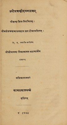 Prabodhacandrodayanāṭakam / Śrīkr̥ṣṇamiśraviracitam, Śrīmaheśacandranyāyalaṅkāra[sic]-kr̥ta-ṭīkāsahitam, Śrījīvānanda-vidyāsāgara-Bhaṭṭācāryyeṇa saṃskr̥tam.