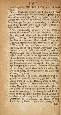 Credit: The dishonour of the gout: or, a serious answer to a ludicrous pamphlet, lately publish'd [by Philander Misiatrus], entitled, The honour of the gout; shewing, I. That the gout is one of the greatest misfortunes that can happen ... II. That all those afflicted ... would gladly be rid of it. And III. That there is a safe and sure cure for it / By John Marten. Source: Wellcome Collection.