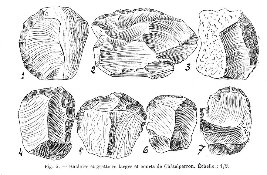 M0015119: Illustration of Upper Paleolithic scrapers from Chatelperron, France