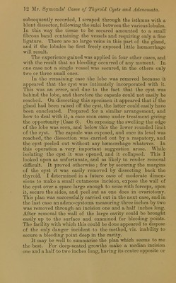 Eight cases of thyroid cysts and adenomata, treated by enucleation / by Charters J. Symonds.