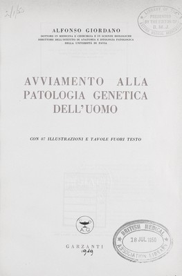 Avviamento alla patologia genetica dell'uomo / Alfonso Giordano.