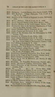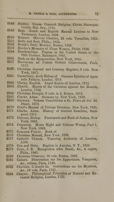 Credit: Catalogue of the extensive and valuable medical, theological, and miscellaneous library of the late John Redman Coxe, M.D : which includes many very rare, valuable, and interesting works in various languages : to be sold by order of executors on Tuesday, November 1st, 1864 and following days until finished, commencing each day at 10 o'clock a.m. at the auction rooms of the subscribers, M. Thomas & Sons, auctioneers. Source: Wellcome Collection.