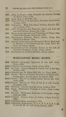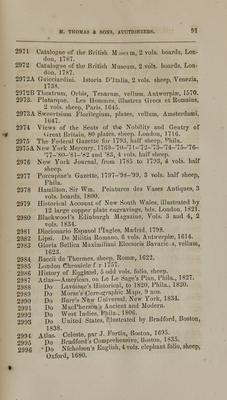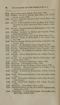 Credit: Catalogue of the extensive and valuable medical, theological, and miscellaneous library of the late John Redman Coxe, M.D : which includes many very rare, valuable, and interesting works in various languages : to be sold by order of executors on Tuesday, November 1st, 1864 and following days until finished, commencing each day at 10 o'clock a.m. at the auction rooms of the subscribers, M. Thomas & Sons, auctioneers. Source: Wellcome Collection.