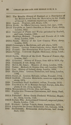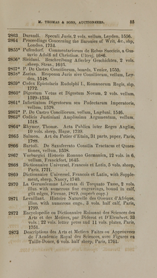 Credit: Catalogue of the extensive and valuable medical, theological, and miscellaneous library of the late John Redman Coxe, M.D : which includes many very rare, valuable, and interesting works in various languages : to be sold by order of executors on Tuesday, November 1st, 1864 and following days until finished, commencing each day at 10 o'clock a.m. at the auction rooms of the subscribers, M. Thomas & Sons, auctioneers. Source: Wellcome Collection.