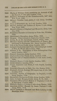 Credit: Catalogue of the extensive and valuable medical, theological, and miscellaneous library of the late John Redman Coxe, M.D : which includes many very rare, valuable, and interesting works in various languages : to be sold by order of executors on Tuesday, November 1st, 1864 and following days until finished, commencing each day at 10 o'clock a.m. at the auction rooms of the subscribers, M. Thomas & Sons, auctioneers. Source: Wellcome Collection.