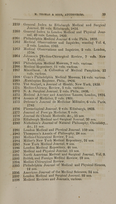 Credit: Catalogue of the extensive and valuable medical, theological, and miscellaneous library of the late John Redman Coxe, M.D : which includes many very rare, valuable, and interesting works in various languages : to be sold by order of executors on Tuesday, November 1st, 1864 and following days until finished, commencing each day at 10 o'clock a.m. at the auction rooms of the subscribers, M. Thomas & Sons, auctioneers. Source: Wellcome Collection.