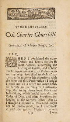 Credit: The true method of dieting horses ... Containing ... also observations concerning the right ordering of troop horses, with a discourse of breeding ... how they are to be governed, so as to prevent accidents and diseases / [W. Gibson]. Source: Wellcome Collection.
