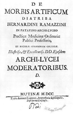 Credit: M0018832: Ramazzini: <i>De morbis…</i>, 1700: title page. Source: Wellcome Collection.