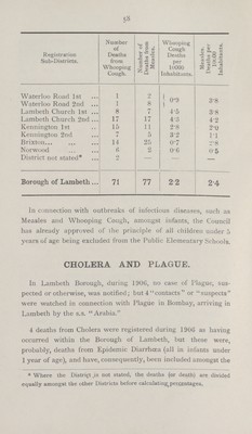 Credit: [Report of the Medical Officer of Health for Lambeth]. Source: Wellcome Collection.