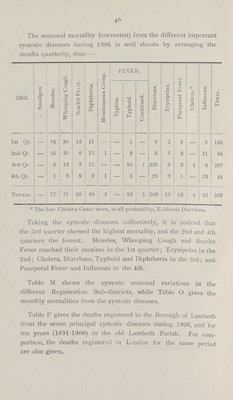 ![LAM 71 REPORT on the VITAL AND SANITARY STATISTICS of the Borough of Lambeth DURING THE YEAR 1906 [ With an Account of the work done by the Sanitary Inspectors, and of the Proceedings taken under the Food and Drugs, Factory and Workshops, and Public Health, Acts.] BY Joseph Priestley,b.a.m.d„d.p.h. } Medical Officer of Health.](https://iiif.wellcomecollection.org/image/b19821931_0001.jp2/full/800%2C/0/default.jpg)