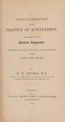 A clinical introduction to the practice of auscultation, and other modes of physical diagnosis : intended to simplify the study of the diseases of the lungs and heart / By H.M. Hughes.