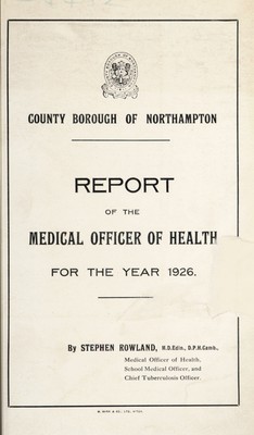 [Report 1926] / Medical Officer of Health, Northampton County Borough.