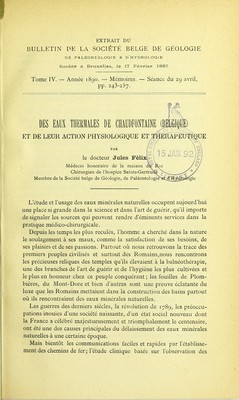 Des eaux thermales de Chaudfontaine (Belgique) et de leur action physiologique et thérapeutique / par Jules Félix.