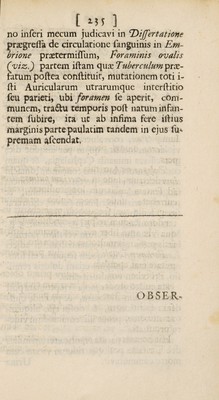 Observationes quaedam medico-practicae & physiologicae; inter quas ... agitur de asthmate et hydrophobia. Quarum etiam decem ultimis subjiciuntur administationes [sic] ... anatomicae, cum ... de cordis in embryone vasorum structura, & sanguinis juxta eam circuitu dissertatione / [Humphrey Ridley].