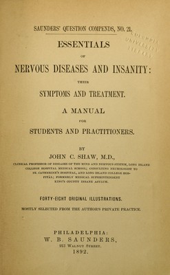 Essentials of nervous diseases and insanity : their symptoms and treatment. A manual for students and practitioners / By John C. Shaw ...