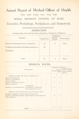 Credit: [Report 1911] / Medical Officer of Health, Bury (Union) R.D.C. Source: Wellcome Collection.