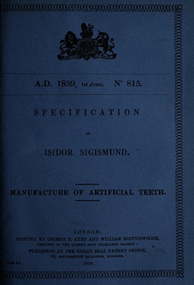 Credit: Specification of Isidor Sigismund : manufacture of artificial teeth. Source: Wellcome Collection.