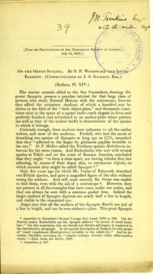 Credit: On the genus Synapta / by S.P. Woodward and Lucas Barrett ; (communicated by J.S. Gaskoin). Source: Wellcome Collection.