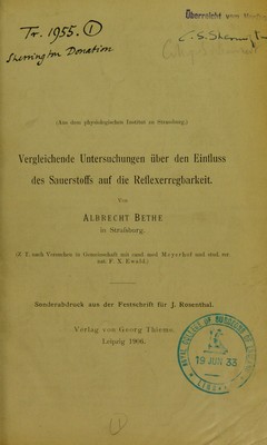 Credit: Vergleichende Untersuchungen über den Einfluss des Sauerstoffs auf die Reflexerregbarkeit. / von Albrecht Bethe. Source: Wellcome Collection.