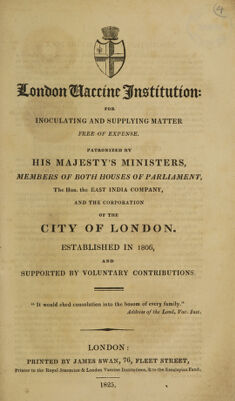 London Vaccine Institution, for inoculating and supplying matter free of expense : Report and Prospectus.