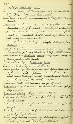 Credit: Terminologie médico-pharmaceutique et anthropologique française-persane : avec traductions anglaise et allemande des termes français : Indications des lieux de provenance des principaus produits animaux et végétaux, détails nouveaux sur le gisement de plusiers minerais importants, sur les principales eaux minérales, sur la thérapeutique indigene et sur les maladies endémiques et particulieres les plus intéressantes des habitants de la Perse / par Joh. L. Schlimmer. Source: Wellcome Collection.