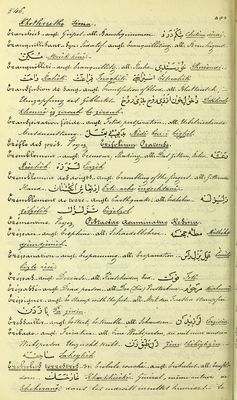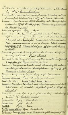 Credit: Terminologie médico-pharmaceutique et anthropologique française-persane : avec traductions anglaise et allemande des termes français : Indications des lieux de provenance des principaus produits animaux et végétaux, détails nouveaux sur le gisement de plusiers minerais importants, sur les principales eaux minérales, sur la thérapeutique indigene et sur les maladies endémiques et particulieres les plus intéressantes des habitants de la Perse / par Joh. L. Schlimmer. Source: Wellcome Collection.