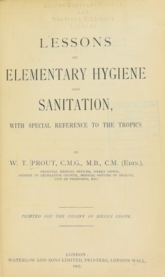 Lessons on elementary hygiene and sanitation : with special reference to the tropics / by W.T. Prout.