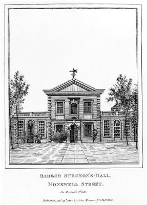 Credit: M0015264: Barber-Surgeon's Hall, Monkwell Street, London, 1800. Source: Wellcome Collection.