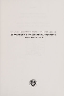Annual review : 1994/95 / Wellcome Institute for the History of Medicine, Department of Western Manuscripts.