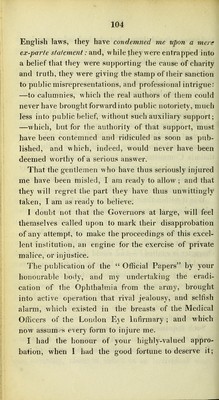Credit: A letter to the Right Honourable and Honourable the Directors of Greenwich Hospital, containing an exposure of the measures resorted to, by the medical officers of the London Eye Infirmary, for the purpose of retarding the adoption, and execution of plans for the extermination of the Egyptian ophthalmia from the Army, and from the Kingdom, submitted for the approval of Government, by Sir William Adams. Source: Wellcome Collection.