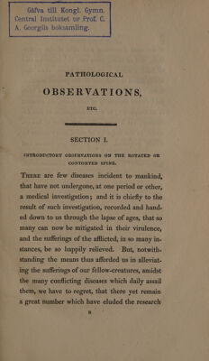 Pathological observations on the rotated or contorted spine, commonly called lateral curvature, deduced from practice. In which are shewn the causes that produce it, the reason of its being mistaken for an incurvation of the spinal column, and the means best adapted to its prevention and cure. Agreeably to the principles laid down, and the author's experience / [Andrew Dods].