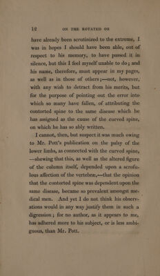 Pathological observations on the rotated or contorted spine, commonly called lateral curvature, deduced from practice. In which are shewn the causes that produce it, the reason of its being mistaken for an incurvation of the spinal column, and the means best adapted to its prevention and cure. Agreeably to the principles laid down, and the author's experience / [Andrew Dods].