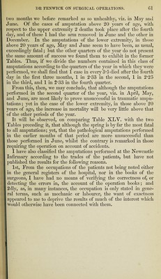 Report of the surgical operations performed at the Newcastle-upon-Tyne Infirmary during a period of seventeen years and a half. Pt. 1, On amputations of the limbs / by Samuel Fenwick.