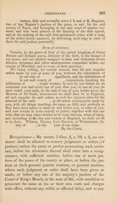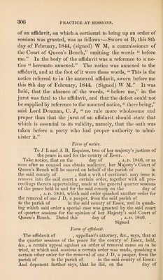 ![148 alleged marriage was and is null and void according to the form of the statute in that case made and provided, and then being in full force and effect. And we, &c. The parties themselves, and the register book of banns showing the absence of a proper entry, will afford evidence in this case. Form 4.— Where the names were fraudulently assumed before 4 Geo. 4, c. 76, or wholly differed. [Copy preceding form to the asterisk, then as follows] by banns, who were therein and thereby described, and afterwards married as aforesaid, under the names of and , which said names were not the proper names of the said A B and C D, or of either of them, nor were they names the said A B or C D had ever been called or known by, but were fraudulently and with intent to deceive and to frustrate the law, then assumed by the said A B and C D for the purposes aforesaid [omit these words where the names wholly differed but there was no fraud] therefore, &c. as in Form 3. If in this case the names wholly differ, though it arose by accident, proof is required only of the fact, without proof of fraudulent intent, for it wholly invalidated the banns at the time, and therefore the marriage to which banns were essen¬ tial. Where the names only partially differ, as the alteration merely of a letter or letters, leaving the word sounding the same or a Christian name were omitted, then fraudulent intent must be shown ; just as much as if the marriage had taken place since 4 Geo. 4, c. 76. The production of the entry in the register or a certified copy will be the best evi¬ dence of the variance, and the admission of either party of the fraudulent intent. The fraud of other parties will not invalidate the marriage. Form 5.— Where both parties wilfully marry without banns or license, since 4 Geo. 4, c. 76. (November 1, 1823) (a). That the said A B and C D knowingly and wilfully intermarried on the day of , a.d. 18 >5, as in the examination mentioned, without due publication of banns or license [if since March 1, 1837, add—or certificate of notice], from a person or per¬ sons having authority to grant the same, first had and obtained, according to the form of the statute in that case made and provided. Therefore the said marriage was and still is null and void. And we, &c. (a) Still in full force as to church marriages.](https://iiif.wellcomecollection.org/image/b2933553x_0359.jp2/full/800%2C/0/default.jpg)
