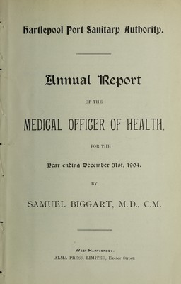 Credit: [Report 1904] / Medical Officer of Health, Hartlepool Port Health Authority. Source: Wellcome Collection.