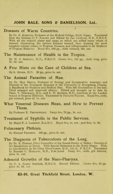 Credit: Laboratory studies in tropical medicine / by C.W. Daniels and A.T. Stanton. Source: Wellcome Collection.