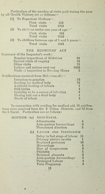 ![Maternal Mortality. No maternal Deaths occurred in the County during the year 1942. Maternity and Child Welfare. Midwives Act, >936. The scheme is working satisfactorily. The District Nursing Associations are anxious to help and co-operate with the County Health Department in the work. Hospital Provision for Mothers and Chiktren. Two beds aro reserved in the Maternity Ward of tho Llandrindod Wells Hospital for the treatment of complicated midwifery cases, or cases in which the home condrtions ar unsatisfactory. Knighton Public Assistance Institution has a well equipped maternity ward. During the year 34 cases (18 for the Urban A reas and 16 from the Rural Areas) were admitted to tho Llandrindod Wells Hospital. Particulars of cases sent in Unsuitable Home Conditions Prolonged Labour . _ , . > Malpresentation (Persistant Occipito Poster] a( Adherent Placenta Contracted Pelvis . (4 of these had Caesarian bection performed) Albuminurea Toxemia Fibroid and P.P.H. ' Malformation (Hydrocaephalic) Albuminurea with A.P.H. . . All these cases’were discharged from Hospital in a sat- isfactory condition. During the year 4 cases were admitted to the Knighton Public Assistance Institution. Health Visiting. There are no full-time Health Visitors in the Coupty the work being carried out by the District Nuis°. , t)|(. full there are 22. Their work is closely supervised by t time County and Deputy County Nursing Supermtendon • 19. 19 1 1 1](https://iiif.wellcomecollection.org/image/b28874961_0015.jp2/full/800%2C/0/default.jpg)