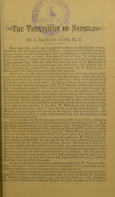 Credit: The treatment of syphilis / by J. Marion Sims. Source: Wellcome Collection.