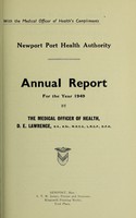 [Report 1949] / Medical Officer of Health, Newport (Gwent) Port Health Authority. Attribution 4.0 International (CC BY 4.0). Source: Wellcome Collection.