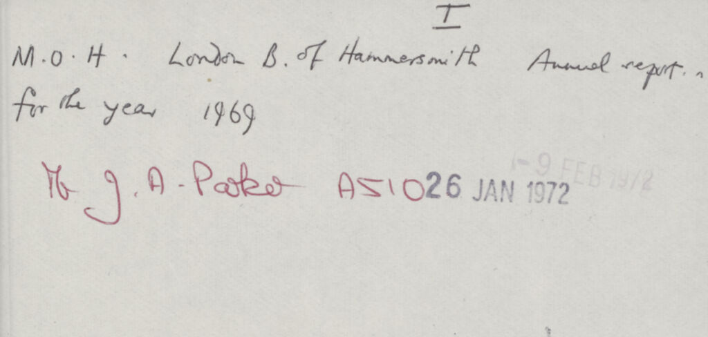 Credit: [Report of the Medical Officer of Health for Hammersmith Borough]. Source: Wellcome Collection.