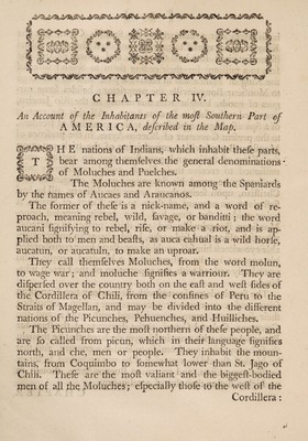 A description of Patagonia and the adjoining parts of South America: containing an account of the soil, produce, animals, vales, mountains, rivers, lakes, &c. of those countries; the religion, government, policy, customs, dress, arms, and language of the Indian inhabitants; and some particulars relating to Falkland Islands / By Thomas Falkner, who resided near forty years in those parts. Illustrated with a new map of the southern parts of America, engraved by Mr. Kitchin ... [Compiled by W. Combe].