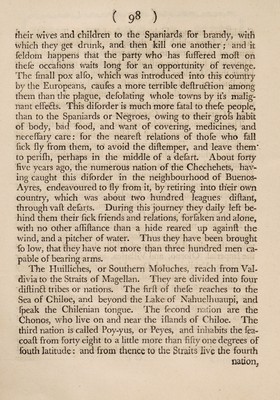 Credit: A description of Patagonia and the adjoining parts of South America: containing an account of the soil, produce, animals, vales, mountains, rivers, lakes, &c. of those countries; the religion, government, policy, customs, dress, arms, and language of the Indian inhabitants; and some particulars relating to Falkland Islands / By Thomas Falkner, who resided near forty years in those parts. Illustrated with a new map of the southern parts of America, engraved by Mr. Kitchin ... [Compiled by W. Combe]. Source: Wellcome Collection.