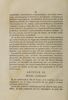 ![ESSAI DE TOPOGRAPHIE PHYSICO-MÉDICALE DE LA VILLE DU VIGAN, DÉPARTEMENT DU GARD 5 Présenté comme dernier acte probatoire5 A LA FACULTÉ DE MÉDECINE DE MONTPELLIER3 le Avril 1814 ; Par -Florent ANTHOUARD 5 DU VIGAN. POUR OBTENIR LE TITRE DE DOCTEUR EN MÉDECINE» • ■ * ü.ç ts èç Tïtykvj énsAàv K'Kiy.YiTca zlç ÿjç âînstpoç êçt , c?£aypovrtcras Xpb xrjv Ssgiv àuTîïjç, 0y.wç xssrat , y.xt 7rpoç ra nvsbp.y.za. , y.su rtpoç rixç avarolàç roü nXiou’ Ou yap twüto (?uvarat 7vpoç /Sopjyju y.seTûU , xat ÿjTtç 7rpoç votov , ou <T Art? npoç Ÿiïtoy «vi^ovra , ou c?’ irrtç 7rpoç duvovroc* ( Itttt. -rrspt Aspwv , ro7r«v , u<?<xtgov. |3. a. ] A MONTPELLIER, Chez Jean MARTEL A.iNÉ , Seul Imprimeur de la Faculté de Médecine ÿ près l’Hôtel de la Préfecture , N.° 62. 1814.](https://iiif.wellcomecollection.org/image/b31941886_0001.jp2/full/800%2C/0/default.jpg)