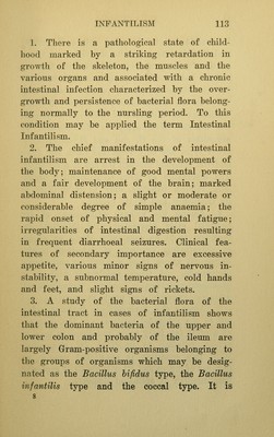 On infantilism from chronic intestinal infection : characterized by the overgrowth and persistence of flora of the nursling period. A study of the clinical course, bacteriology, chemistry and therapeutics of arrested development in infancy / by C.A.Herter.